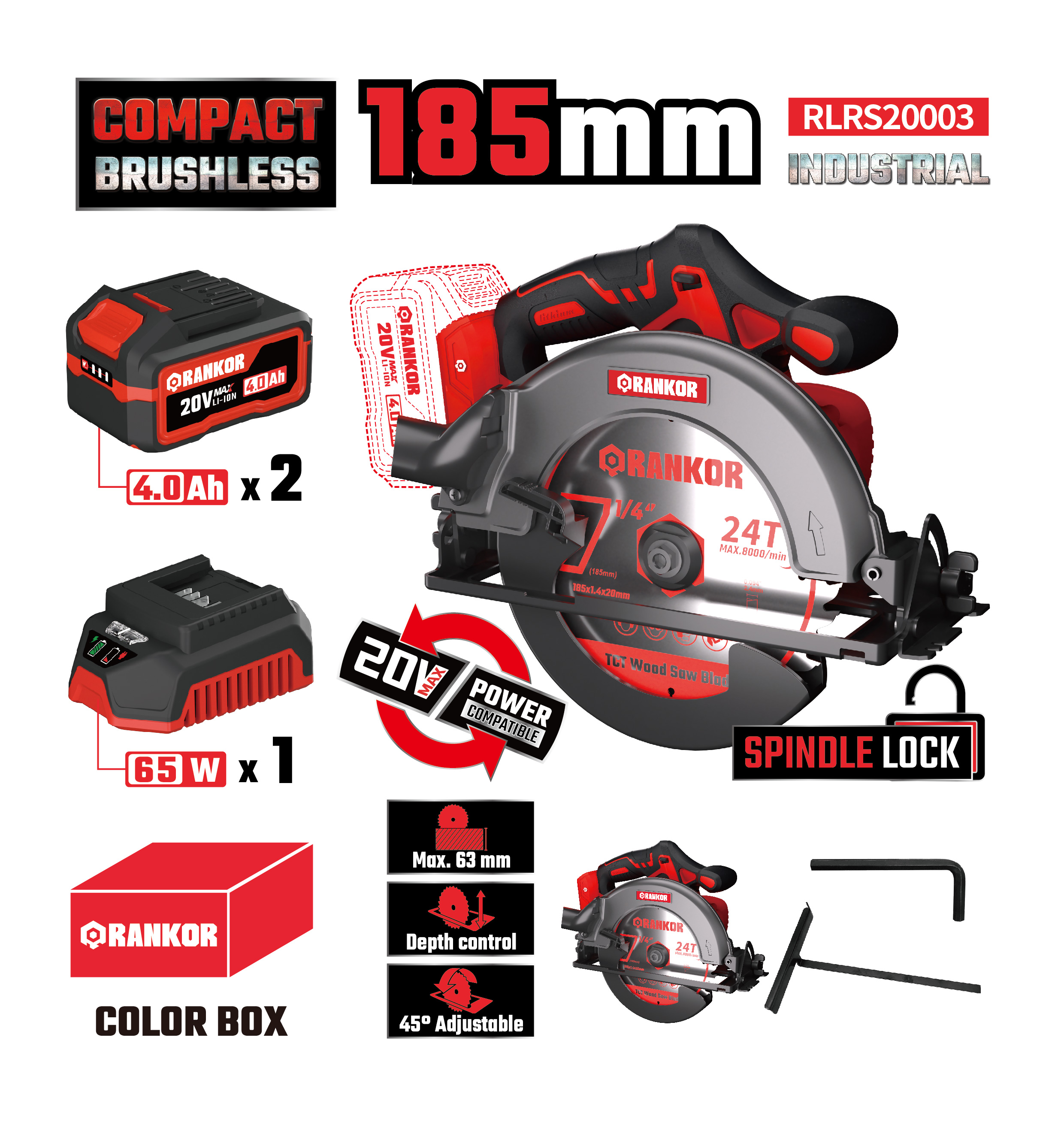 24T185 Saw blade *1; Wrench *1; Guide ruler *1; 4.0Ah Battery pack *2; Charger *1; User manual *1