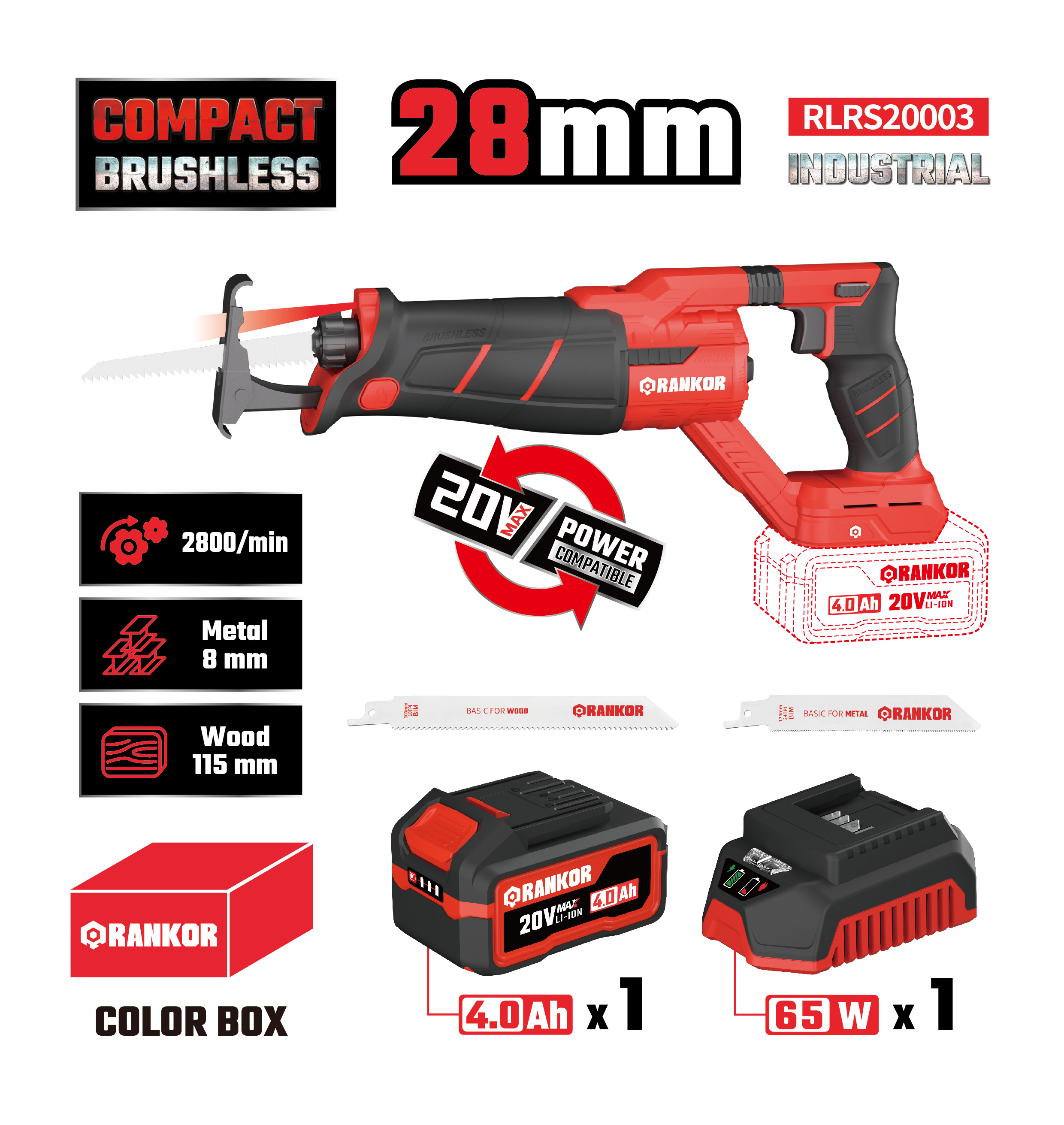 Wood cutting saw blade *1; Metal cutting saw blade *1; 4.0Ah Battery pack *1; Charger *1; User manual *1