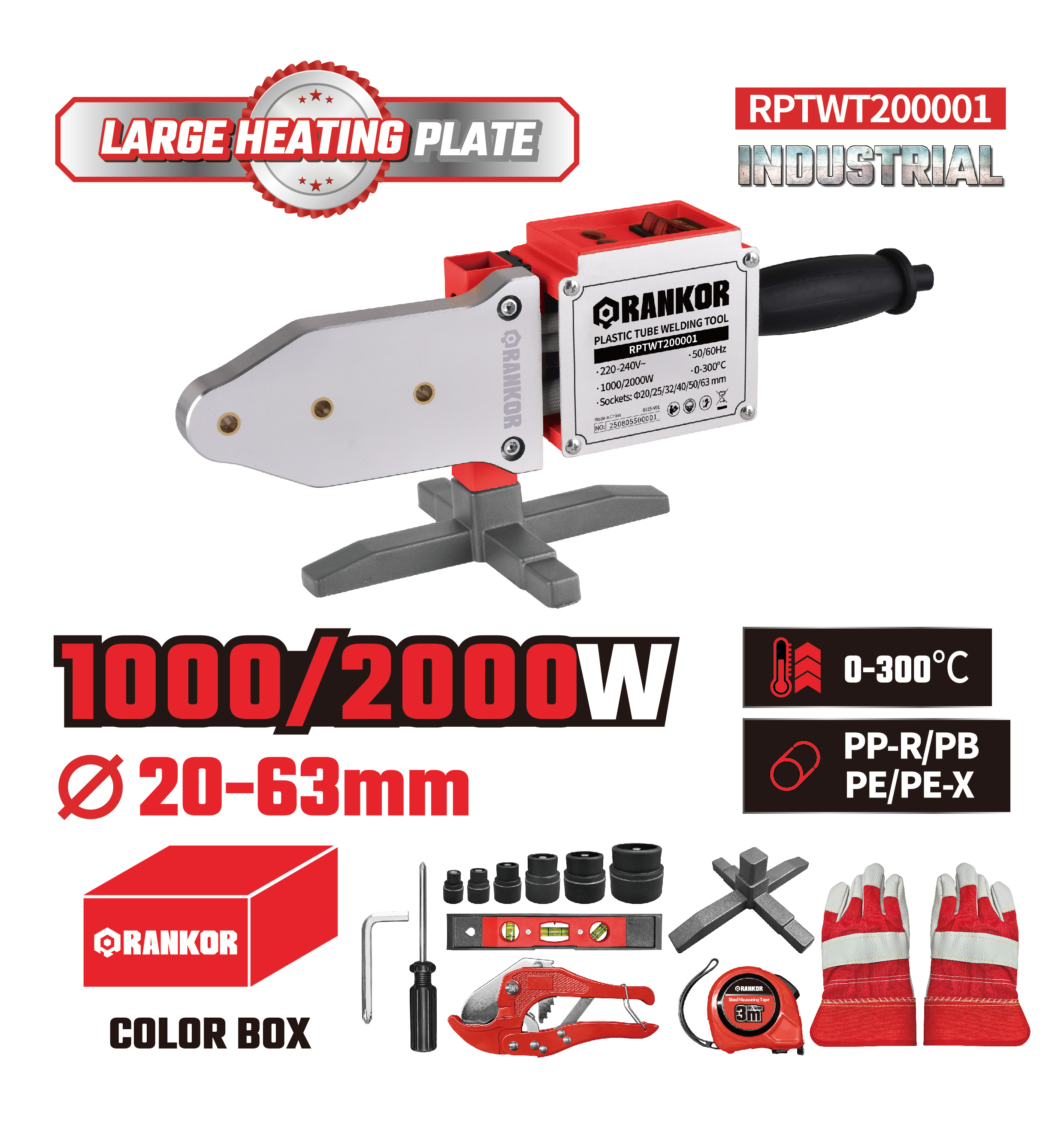 Large heating plate, can heat melt Φ20 PVC pipe within 15 seconds.